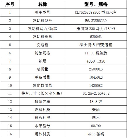 1、整車型號: CLT5252GSSEQ6型灑水車